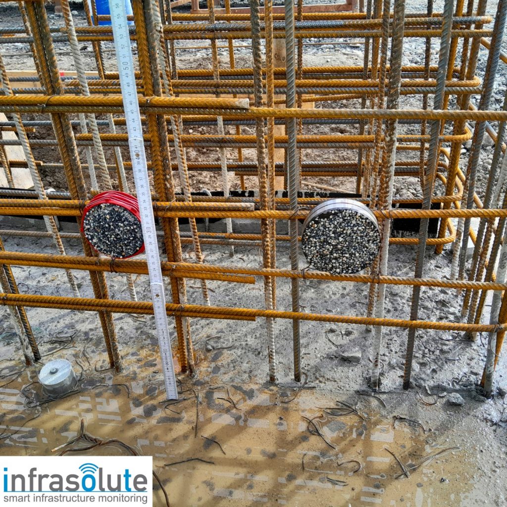 Im Neubau werden die Sensoren während der Bewehrungsarbeiten mit Rödeldraht fixiert und beim Betonieren vollständig integriert.